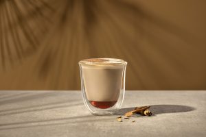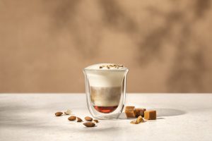● Den frisch gebrühten Espresso direkt darüber gießen und kurz umrühren.